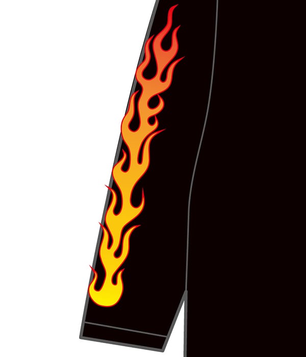 今回は袖に文字ではなく、炎をイメージしたプリントを配置した一枚!!!
