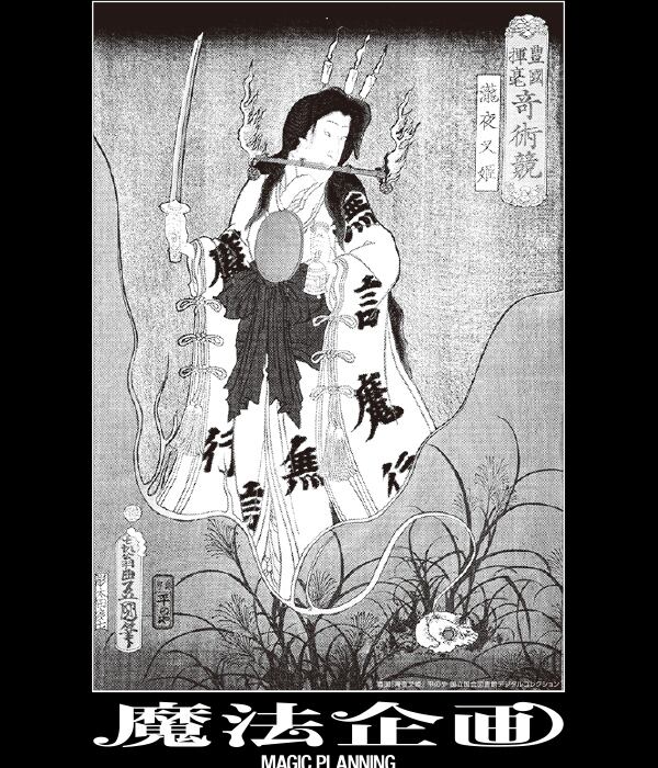 平将門の娘であり、妖術使いであり鬼女となった「滝夜叉姫」がプリントされた新作Tシャツです。